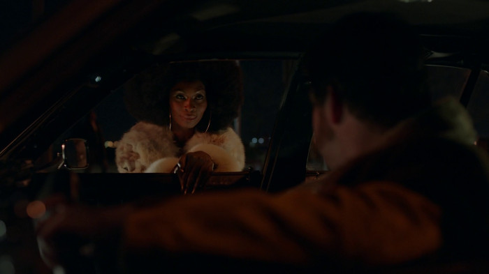 The episode opens up to a young Afro wig wearin’ Elektra, working the piers and hookin’ up with some strange for cash. Turns out that business is going pretty well, and by the time Elektra and her homegirl call it a night, Ms. Abundance has some serious paper. While chit-chatting with her friend, Elektra declares that one day, she’ll have it all: money, finery, a nice home, all that good stuff. Elektra’s homegirl jokes that she’ll have a nice sugar daddy to finance all that, but Elektra proudly declares that she’s never going to depend on a man for anything. More on that later.