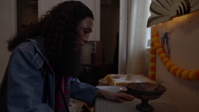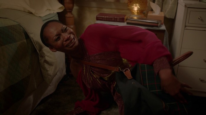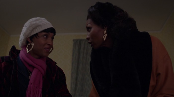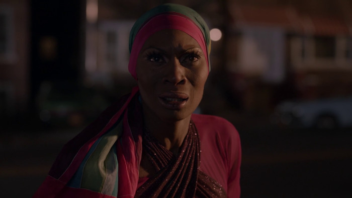 Elektra’s chipper mood is ruined once she finds out that her homegirl lost the keys to her apartment. You see, Elektra is still living with her mother—who doesn’t really know her son is transitioning—and after work, she’d usually change into her male clothes at her friend’s place. Now she can’t do that. Elektra’s homegirl tries to assure her there’s no way her mother is still up after 5:00 AM, but Elektra tells her that she doesn’t know Mrs. Tasha Jackson.