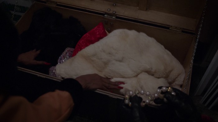 Elektra and Blanca enter the house through the now open window and go into her old room. Lo and behold, the trunk is still there. Elektra takes a moment to show Blanca all the fine furs and fashions the trunk holds before carrying it downstairs.