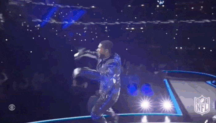 Usher’s show started off a bit all over the place, but in an interesting way. As I’m sure you all know, Usher’s had a residency in Vegas for a hot minute now, and this year’s Super Bowl took place in the city that never sleeps. The show opened with “Caught Up,” and featured acrobatics, contortionists, circus performers, and show girls.